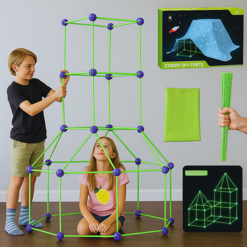 Tired of seeing your kids glued to screens? GlowFort Galaxy turns any room or backyard into a glowing world of creativity and discovery! This glow-in-the-dark fort-building kit inspires hands-on play, teamwork, and imagination while keeping kids entertained for hours.