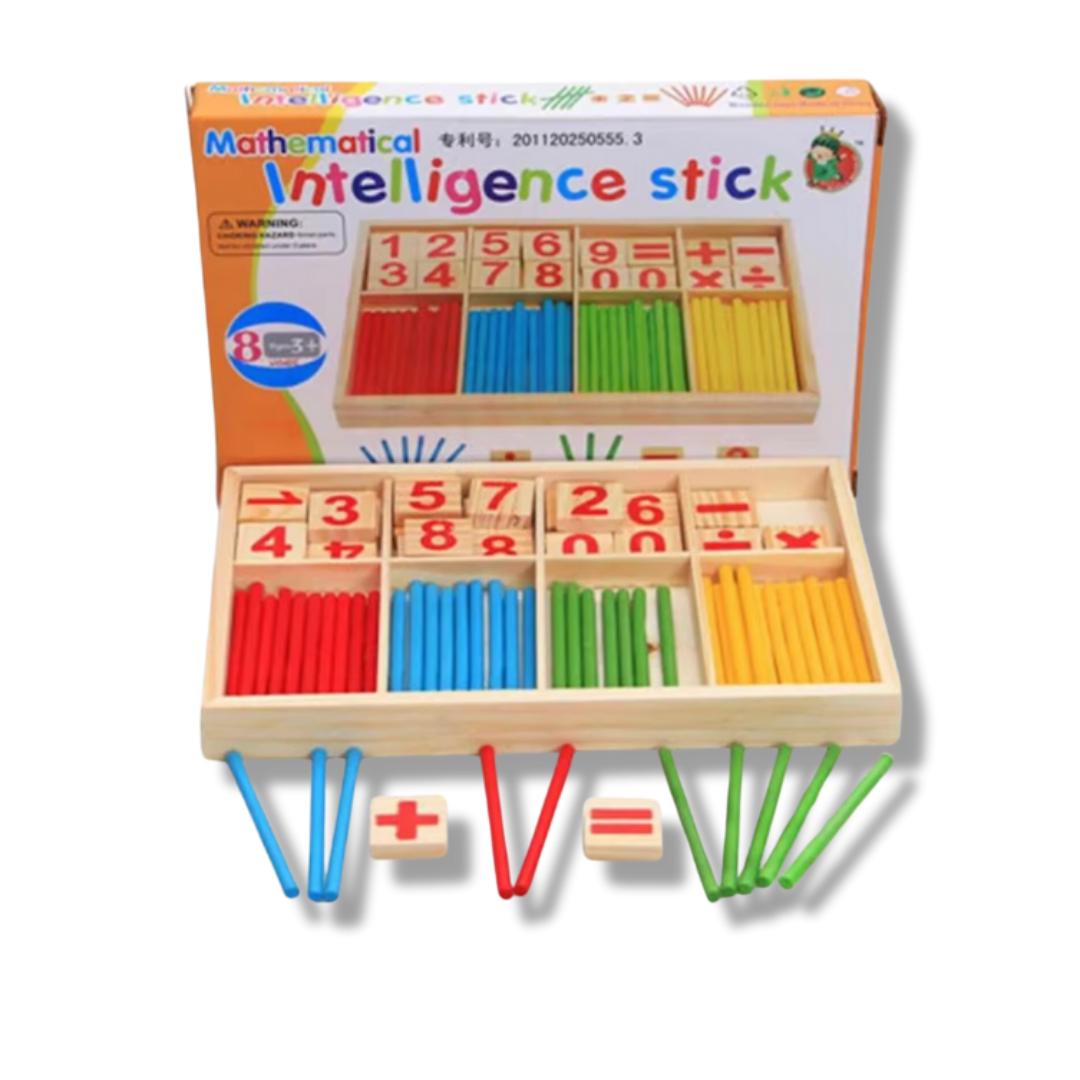 Featuring colorful wooden counting sticks and number tiles, this set helps children engage with math through interactive play. It’s well-suited for home learning or classroom settings and supports the development of foundational number skills through visual and tactile learning.