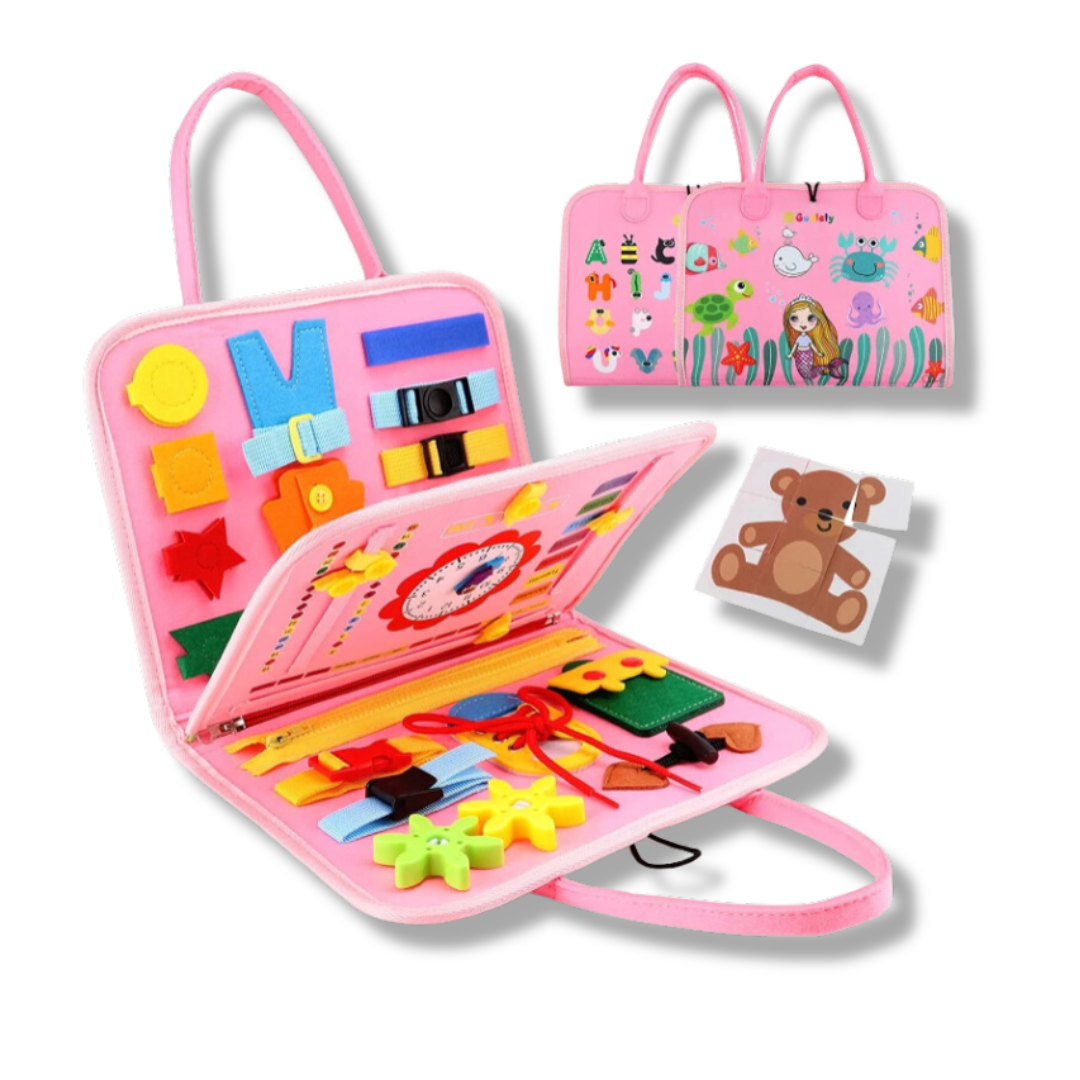 Montessori Sensory Busy Board Toy for Toddlers – Portable Learning Activity Board